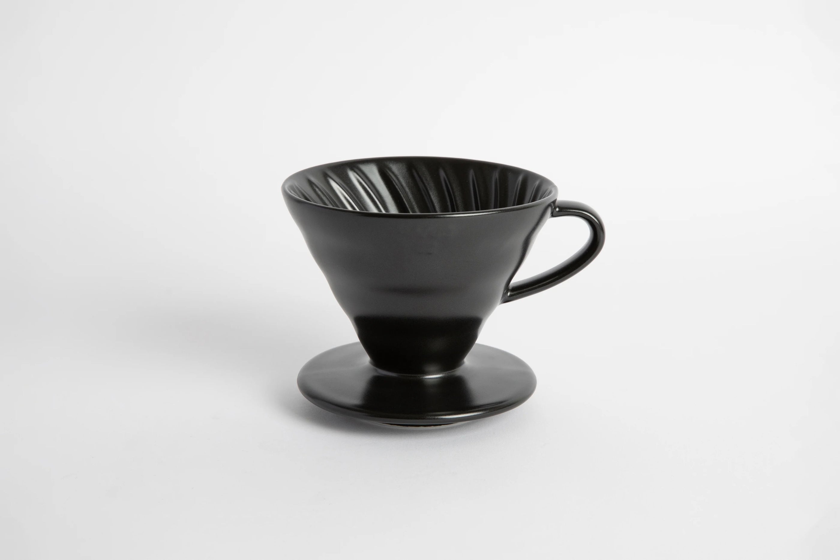 Hario V60 ceramic drippers utilize a traditional style of Japanese ceramics with a 400 year history. This method is both beautiful and practical, allowing for deeper layering of coffee grounds; its spiral ridges and lack of flow restriction allow the user to pour water quickly for a delicate body, or slowly for a heavier flavor.