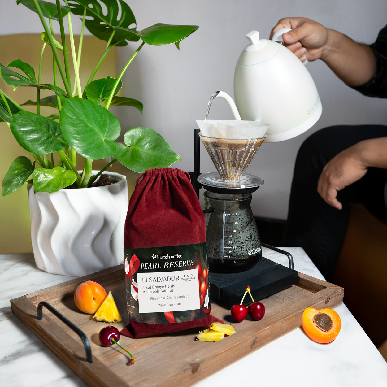 Back and better than ever! El Salvador Jasal Orange Geisha is our very first Pearl Reserve Special Holiday Edition—presented in a luxurious velvet bag, perfect for gifting. For the fifth year in a row, we’re delighted to share the Jasal Orange Geisha with you—this time in greater abundance than ever before. Our nearly 20-year Direct Trade partnership with Finca Jasal has blossomed into something truly special, thanks to our close bond with the Salaverría family. From the moment their rare Orange Geisha trees matured, Andrés Salaverría set aside exclusive bags just for us—a testament to our friendship and shared passion. Now, for the very first time, we’re proud to offer an El Salvador Jasal Orange Geisha Anaerobic Natural . Taste the excitement: vibrant pineapple, juicy cherry, and apricot, with a light body, sweet aroma, and a delicate, tea-like finish. This isn’t just a coffee—it’s history, friendship, and flavor in every sip.
